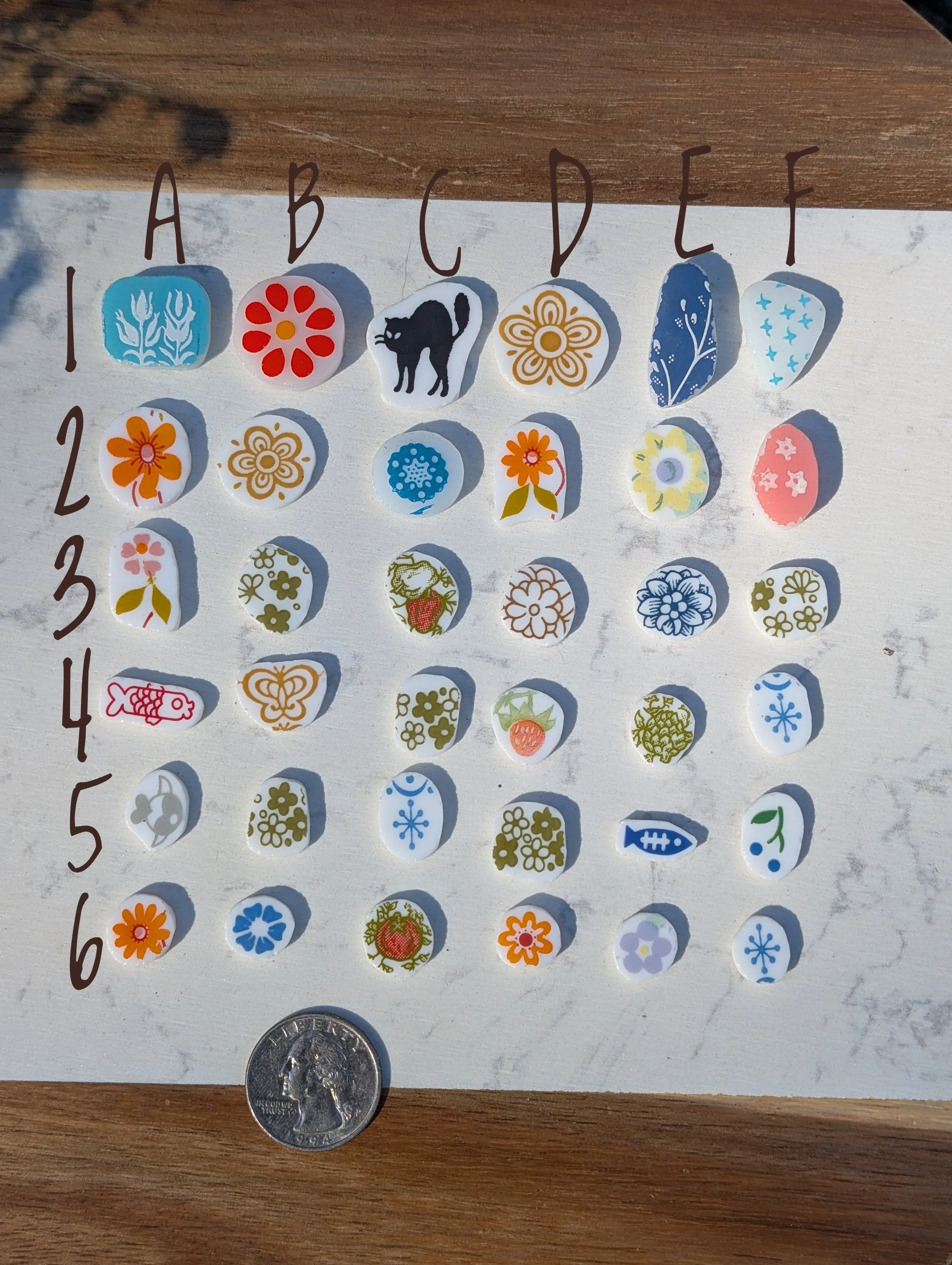 Choose from 30 different patterns, shapes, sizes! Each piece piece of Pyrex/Corelle will have a handmade sterling silver bezel and ring band made.All will be made with the beaded border (ex in the last picture). Please ensure you email or DM on instagram your ring size (squarespace only allows for 1 variation option).